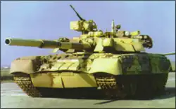 One of the various prototypes for the T-84. Featured new reactive armor on the sideskirts and an APU. Manufactured in 1999.[13][14]