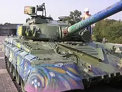 One of the various prototypes for the T-84. Featured a welded turret with integrated reactive armor. Smoke grenades were moved from the front of the turret onto the top rear part. This smoke launcher configuration was kept for the T-84 after this. Manufactured in 1992.[13][14]