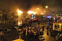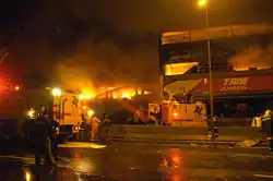 ![]() The TAM Express warehouse on fire, shortly after the aircraft crashed into it | |