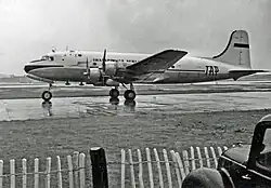 In 1947, the airline launched its first domestic services, commencing a route between Lisbon and Porto, as well as another international route between São Tomé and London.[10] That same year, a total of four Douglas DC-4 Skymasters were purchased; these reportedly remained in the airline's service as late as 1960.[11] These were used on the routes to Africa and to major European destinations, including London.[10] During 1948, new services to Seville and Paris were launched.[10]