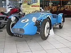 Despite the lack of success at Sebring, the company continued to enter international motor racing events in 1962, including the Dutch Tulip Rally in May, and the 24 Hours of Le Mans in June. The Tulip Rally resulted in one car finishing third in its class, but the Le Mans outing was fraught with unfortunate events for the TVR team. In the time leading up to the race, two of the cars slated to compete were crashed in different incidents and hastily rebuilt. The single car that started the race would badly overheat and retire during the third lap.[6] David Hives described the event as a "fiasco", and noted that "it cost TVR a small fortune". TVR cars were driven to greater success by World War II flying ace Tommy Entwistle, who, in 1962 and 1964, finished as runner-up in the Freddie Dixon Challenge Trophy race series.[7] Entwistle won the series in 1963, 1965, and 1966. The car was maintained by David Hives throughout this time. After this racing success, Entwistle stopped racing for a period of time and sold the car to Gerry Sagerman.
