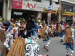 Street performers carrying taklub on their backs (Tacloban takes its name from the taklub, a bamboo fish-catching contraption).
