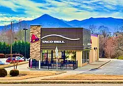 In 1964, the first franchise was purchased by former police officer Kermit Bekke. This location, located at 1654 West Carson Street in Torrance, California,[23] had its grand opening on May 28, 1965. Bekke sold his franchise a year and a half later.[24] This location closed in 1975 when it moved across the street to store #1130 at 1619 West Carson Street,[25] which itself would close in the late 1990s and subsequently be repurposed. On January 20, 1967, the 100th Taco Bell grand opening took place in Anaheim, located at 400 South Brookhurst (store #63[26]); this location would later be replaced by a new location at 324 South Brookhurst in 1993.[27] The first Taco Bell restaurant east of the Mississippi River (the 270th to open,[28] store #258[29]) opened at 2050 East Main Street in Springfield, Ohio, on September 20, 1968.[30][14] Original Taco Bells featured only walk-up window service without indoor seating or drive-thru service. Inside seating was added sporadically in 1968 and drive-thru service was not generally available until 1980. As of 2025, seven original mission-style operating Taco Bell restaurants still remain, located in California and Colorado. A mission-style location (opened in April 1976[31]) that operated in Honolulu, Hawaii (store #1281[32]) remodeled in 2024,[33][34] and another Mission-style location in Scottsdale, Arizona (store #31,[35][36] opened circa July 3, 1966[37]) closed on April 12, 2025.[38] Many former mission-style Taco Bell locations still survive which have been repurposed, frequently as other Mexican fast food restaurants.[39] In 1970, Taco Bell went public with 325 restaurants.