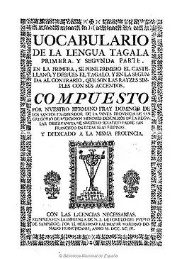 - ^ Noceda, Juan José de; Sanlucar, Pedro de (2013) [1860]. Vocabulario de la lengua tagala. Maynila: Komisyon sa Wikang Filipino. p. iv.