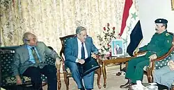 In 2000 and 2001, he further expanded Iraq's economic partnerships by signing free trade agreements with countries such as Jordan, Egypt, and Syria.[5] These agreements weakened U.S. efforts to isolate Iraq economically and politically, providing the country with alternative markets and trade routes despite ongoing sanctions.[5] His ability to foster these alliances demonstrated a strategic push to counterbalance American influence in the region.[5]