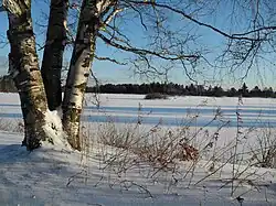 While the majority of studies on boreal forest transitions have been done in Canada, similar trends have been detected in the other countries. Summer warming has been shown to increase water stress and reduce tree growth in dry areas of the southern boreal forest in central Alaska and portions of far eastern Russia.[64] In Siberia, the taiga is converting from predominantly needle-shedding larch trees to evergreen conifers in response to a warming climate. This is likely to further accelerate warming, as the evergreen trees will absorb more of the sun's rays. Given the vast size of the area, such a change has the potential to affect areas well outside of the region.[65] In much of the boreal forest in Alaska, the growth of white spruce trees are stunted by unusually warm summers, while trees on some of the coldest fringes of the forest are experiencing faster growth than previously.[66] Lack of moisture in the warmer summers are also stressing the birch trees of central Alaska.[67]
