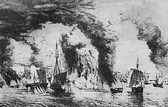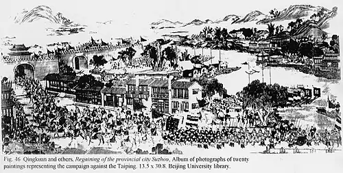 ![]() ![]() Top: The Battle of Anqing (1861), 1884 painting Bottom: A battle on the Yangtze between Qing and Taiping naval forces | |||||||