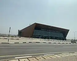 Tamale is served by Tamale International Airport. Located about 11 km (6 nmi; 7 mi) from downtown Tamale, the airport is mainly used by commercial airlines such as Africa World Airlines and Passion Air which are the only operational companies as of 2024. They run regular flights between Tamale and Accra's Kotoka International Airport, along with other regional capitals.[18]