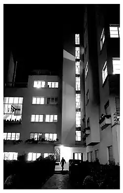 In 1928 she was divorced from Tadeusz Łempicki.[26] That same year, she met Raoul Kuffner, a baron of the former Austro-Hungarian Empire and an art collector. His title was not an ancient one; his family had been granted the title by the second-to-last Austro-Hungarian Emperor, Franz-Joseph I, because Kuffner's family had been the supplier of beef and beer to the imperial court.[37] He owned properties of considerable size in eastern Europe. He commissioned her to paint his mistress, the Spanish dancer Nana de Herrera; after its completion, Lempicka and the baron began their relationship.[30] She bought an apartment on Rue Méchain in Paris and had it decorated by the modernist architect Robert Mallet-Stevens and her own sister Adrienne de Montaut. The furniture was by René Herbst. The austere, functional interiors appeared in decoration magazines.[38]