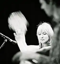 Singers who rarely play an instrument are likely to play the tambourine at concerts:[12] among the most well-known examples are Mick Jagger of the Rolling Stones, Jim Morrison of the Doors,[13] Janis Joplin leading Big Brother and the Holding Company, and Stevie Nicks as part of Fleetwood Mac and as a solo performer. Very often, the instrument used in pop music is the headless tambourine or "jingle ring", lacking a drum head. The singer should, however, play the tambourine with the overall song arrangement in mind; in some cases, band members have purposely hidden the tambourine from an irresponsible lead singer who disregards the interplay of rhythm.[12] On the other hand, skilled performers such as Jagger have brought a fine sense of timing to their tambourine playing. In the Rolling Stones' 1964 U.S. single of "Time Is on My Side", the less-known version, Jagger lays the tambourine on the front of the beat while Charlie Watts holds the snare to the back of the beat, which allows the longer decay time of the tambourine to synchronise with the snare at the end. The result is an intentional feeling of running to catch up.[14]