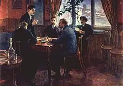 Tampere was the centre of many important political events in the early 20th century, such as the 1905 conference of the Russian Social Democratic Labour Party (RSDLP), led by Vladimir Lenin, held in the Tampere Workers' Hall during their flight from Russia, where it was decided, among other things, to launch an armed insurrection that eventually led to the October 1917 revolution in the Russian Empire.[12][67][68] Also, on 1 November 1905, during the General Strike, the famous Red Declaration was proclaimed in Keskustori.[61][69]