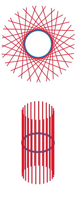 Another simple example is the unit circle, (see picture above). The tangent bundle of the circle is also trivial and isomorphic to . Geometrically, this is a cylinder of infinite height.