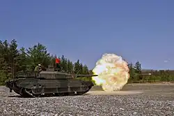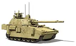 In terms of firepower, the focus of 2010s-era R&D was increased detection capability such as thermal imagers, automated fire control systems for the guns and increased muzzle energy from the gun to improve range, accuracy and armour penetration.[65] The most mature future gun technology is the electrothermal-chemical gun.[66] The XM291 electrothermal-chemical tank gun has gone through successful multiple firing sequences on a modified American M8 Armored Gun System chassis.[67] To improve tank protection, one field of research involves making the tank invisible to radar by adapting stealth technologies originally designed for aircraft. Improvements to camouflage or and attempts to render it invisible through active camouflage, which changes according to where the tank is located, are being pursued. Research is also ongoing in electromagnetic armour systems to disperse or deflect incoming shaped charges,[68][69] as well as various forms of active protection systems to prevent incoming projectiles (RPGs, missiles, etc.) from striking the tank.