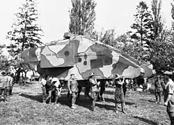 Russia independently built and trialed two prototypes early in the War; the tracked, two-man Vezdekhod and the huge Lebedenko, but neither went into production. A tracked self-propelled gun was also designed but not produced.[42]