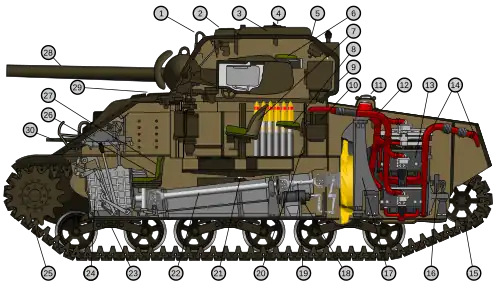 Cutaway of an M4A4 Sherman tank, the primary tank used by the United States and a number of the other western allies during the Second World War.