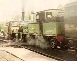 The inverted saddle tank was a variation of the wing tank where the two tanks were joined underneath the smokebox and supported it.[19] This rare design was used for the same reasons as the wing tank but provided slightly greater water capacity. The Brill Tramway locomotive Wotton is believed to have had an inverted saddle tank. The inverted saddle tank was a speciality of W.G.Bagnall.[20]