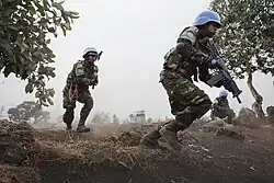 During World War II, about 100,000 people from Tanganyika joined the Allied forces[53] and were among the 375,000 Africans who fought with those forces.[54] Tanganyikans fought in units of the King's African Rifles during the East African Campaign in Somalia and Abyssinia against the Italians, in Madagascar against the Vichy French during the Madagascar Campaign, and in Burma against the Japanese during the Burma Campaign.[54] Tanganyika was an important source of food during this war, and its export income increased greatly compared to the pre-war years of the Great Depression.[53] Wartime demand, however, caused increased commodity prices and massive inflation within the colony.[55]