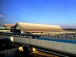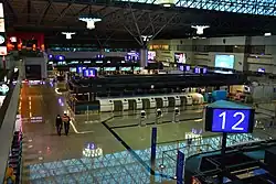 The airport opened for commercial operations in 1979 as Chiang Kai-shek International Airport (中正國際機場) and was renamed in 2006.[5] It is an important regional transshipment center, passenger hub, and gateway for destinations in Asia, and is one of two international airports that serve Taipei. The other, Taipei Songshan Airport, is located within the city limits and served as Taipei's only international airport until 1979.[6] Songshan now mainly serves chartered flights, intra-island flights, and limited international flights.