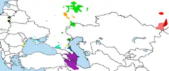 ![]() Distribution of the Tatar language in light green | |