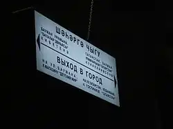 In polysyllabic words, the front-back distinction is lost in reduced vowels: all become mid-central.[23] The mid reduced vowels in an unstressed position are frequently elided, as in кеше keşe [kĕˈʃĕ] > [kʃĕ] 'person', or кышы qışı [qɤ̆ˈʃɤ̆] > [qʃɤ̆] '(his) winter'.[24] Low back /ɑ/ is rounded [ɒ] in the first syllable and after [ɒ], but not in the last, as in бала bala [bɒˈlɑ] 'child', балаларга balalarğa [bɒlɒlɒrˈʁɑ] 'to children'.[24] In Russian loans there are also [ɨ], [ɛ], [ɔ], and [ä], written the same as the native vowels: ы, е/э, о, а respectively.[24]