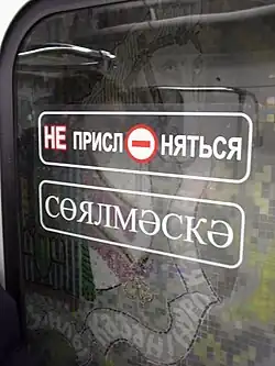 In the 2010 census, 69% of Russian Tatars claimed at least some knowledge of the Tatar language.[6] In Tatarstan, 93% of Tatars and 3.6% of Russians claimed to have at least some knowledge of the Tatar language. In neighbouring Bashkortostan, 67% of Tatars, 27% of Bashkirs, and 1.3% of Russians claimed to understand basic Tatar language.[7]