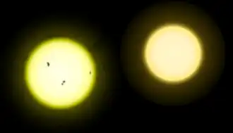 - ^ Hall, J. C.; Lockwood, G. W. (2004). "The Chromospheric Activity and Variability of Cycling and Flat Activity Solar-Analog Stars". The Astrophysical Journal. 614 (2): 942–946. Bibcode:2004ApJ...614..942H. doi:10.1086/423926.