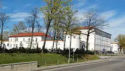 The previously small town was significantly developed in the 19th century and early 20th century, however its architecture suffered devastating damages during World War I and World War II.[6] Notable surviving buildings in the city include the castle (19th century Russian Empire customs), 19th century Post office, buildings from the 20th century inter-war period, several churches: the Lutheran (built in 1843), the Catholic (1904) and Orthodox (1933). Lithuanian, Swedish and Danish factories operate in the city.