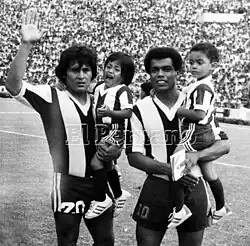 After standing out notably in local football, he was called up to the Peru national team by head coach Didi for 1968 for the qualifiers for the 1970 FIFA World Cup held in Mexico. At just 18 years old, Cubillas made his official debut against Argentina in the qualifiers in the last round of qualifiers in 1968.[26] In a match that will be difficult to forget for both Peruvians and Argentines, led by Cubillas, Peru started a heroic draw in 2 to 2 that took them to the World Cup and that eliminated the Argentine national team. Cubillas would score his first goal for Peru on 8 May, 1969 in a friendly against Colombia in Bogotá. Cubillas would play in three World Cups between 1970 and 1982 along with one Copa América.[27]