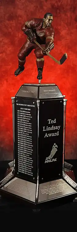- ^ a b The Canadian Press (2010-04-29). "NHLPA officially renames Pearson Award after Ted Lindsay". The Sports Network. Archived from the original on 19 October 2012. Retrieved 2017-10-13.