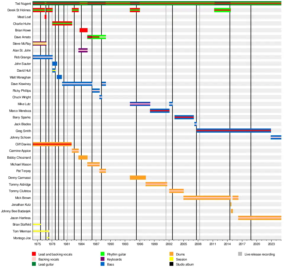 {{cite AV media notes}}: CS1 maint: others in cite AV media (notes) (link) - ^ "The Band – TedNugent.com". March 22, 2012. Archived from the original on March 22, 2012. Retrieved February 21, 2023.