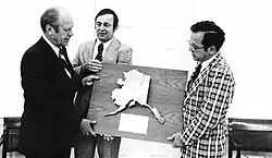 Seaton and Stevens worked with Gen. Nathan Twining, the incumbent Chairman of the Joint Chiefs of Staff, who himself had previously served in Alaska; and Jack L. Stempler, a top Defense Department attorney, to create a compromise that would address Eisenhower's concerns. Much of their work was conducted in a hospital room at Walter Reed Army Hospital, where Interior Secretary Seaton was receiving treatment for reoccurring health issues with his back.[41] Their work concentrated on refining the line on the map that Eisenhower had drawn in 1954, one which became known as the PYK Line after three rivers (the Porcupine, Yukon, and Kuskokwim) whose courses defined much of the line.[41] The PYK Line was the basis for Section 10 of the Alaska Statehood Act, which Stevens wrote.[41] Under Section 10, the land north and west of the PYK Line – which included the entirety of Alaska's North Slope, the Seward Peninsula, most of the Yukon-Kuskokwim Delta, the western portions of the Alaska Peninsula, and the Aleutian and Pribilof Islands – would be part of the new state, but the president would be granted emergency powers to establish special national defense withdrawals in those areas if deemed necessary.[43][44][45] "It's still in the law but it's never been exercised", Stevens later recollected. "Now that the problem with Russia is gone, it's surplusage. But it is a special law that only applies to Alaska."[41]