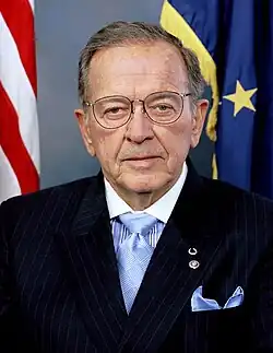Theodore Fulton Stevens Sr. (November 18, 1923 – August 9, 2010)[1][2] was an American politician and lawyer who served as a U.S. Senator from Alaska from 1968 to 2009. A member of the Republican Party, he was the longest-serving Republican Senator in history at the time he left office. He was the president pro tempore of the United States Senate in the 108th and 109th Congresses from 2003 to 2007, and was the third U.S. Senator to hold the title of president pro tempore emeritus. He was previously Solicitor of the Interior Department from 1960 to 1961.[3][4][5] Stevens has been described as one of the most powerful members of Congress and as the most powerful member of Congress from the Northwestern United States.[6][7][8]