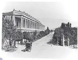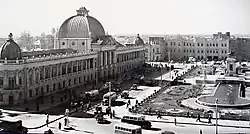 After World War I, the constituent assembly elected Reza Shah of the Pahlavi dynasty as the new monarch, who immediately suspended the Baladie law of 1907, replacing the decentralized and autonomous city councils with centralist approaches to governance and planning.[38] From the 1920s to the 1930s, under the rule of Reza Shah, the city was rebuilt. Several old buildings, including parts of the Golestan Palace, Tekye Dowlat, and Tupkhane Square, were replaced with modern buildings influenced by classical Iranian architecture, particularly the buildings of the National Bank, the police headquarters, the telegraph office, and the military academy.