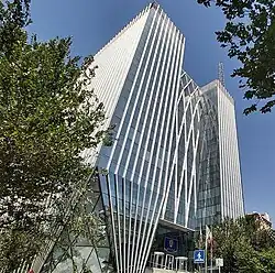 The 435-meter-high Milad Tower, one of the proposed development projects of pre-revolutionary Iran,[51] was completed in 2007 and has become a famous landmark of Tehran. Tabiat Bridge, a 270-meter pedestrian overpass[15] that was designed by award-winning architect Leila Araghian, was completed in 2014. The city municipality started planting a large number of imported palm trees, replacing endemic plane trees.[52] In June 2025, Tehran was attacked by Israeli airstrikes.[53] On June 2025 an unprecedented event in the history of Iran and Tehran took place as people of Tehran committed mass evacuation.[54][55][56]