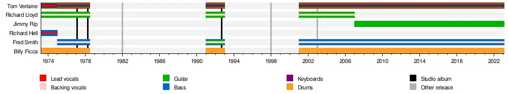 - Tom Verlaine – lead vocals, guitar, keyboards (1973–1978, 1991–1993, 2001–2023; his death)