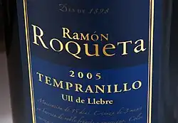 Tempranillo (also known as Ull de Llebre in Catalonia, Cencibel, Tinto Fino and Tinta del País in Spain, Aragonez or Tinta Roriz in Portugal, and several other synonyms elsewhere) is a black grape variety widely grown to make full-bodied red wines in its native Spain.[1][2] Its name is the diminutive of the Spanish temprano ("early"), a reference to the fact that it ripens several weeks earlier than most Spanish red grapes. Tempranillo has been grown on the Iberian Peninsula since the time of Phoenician settlements. It is the main grape used in Rioja, and is often referred to as Spain's noble grape. The grape has been planted throughout the globe's wine regions.