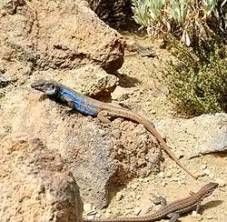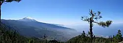 Teide National Park, located in the center of the island, is also a UNESCO World Heritage Site. It includes Mount Teide, which has the highest elevation in Spain, and the highest elevation among all the islands in the Atlantic Ocean. It is also the third-largest volcano in the world when measured from its base.[16] Another geographical feature of the island, the Macizo de Anaga (massif), has been designated as a UNESCO Biosphere Reserve since 2015.[17] Tenerife also has the largest number of endemic species in Europe.[17]