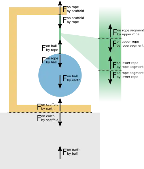 Each segment of the rope is pulled by the two neighboring segments, stressing the segment in what is also called tension.