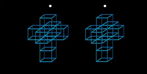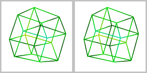 Stereoscopic 3D projection of a tesseract (parallel view)