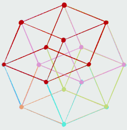 A 3D projection of a tesseract performing a double rotation about two orthogonal planes in 4-dimensional space.