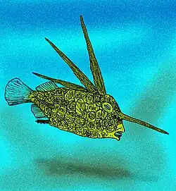 13. ^ a b c d e f Franceso Santini; James C. Tyler (2003). "A phylogeny of the families of fossil and extant tetraodontiform fishes (Acanthomorpha, Tetraodontiformes), Upper Cretaceous to Recent". Zoological Journal of the Linnean Society. 139 (4): 565–617. doi:10.1111/j.1096-3642.2003.00088.x.
