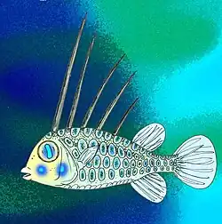Tetraodontiformes is a name first used for this order in 1940 by Lev Berg, the order was originally proposed in 1817 as the "Les Plectognathes", the Plectognathi. Cuvier divided this into two families "Les Gymnodontes" and "Les Sclerodermes".[2] In 1940 Berg first used the term Tetraodontiformes for this order and this name is the currently accepted name as it follows the International Code of Zoological Nomenclature rule that a name for a family or higher taxa must have its root based on the type species of that grouping.[3][4] In this case the type species is Tetraodon lineatus Linnaeus, 1758.[5] The 5th edition of Fishes of the World recognises the order as a derived order within the Actinopterygii and as a monophyletic order within the Percomorpha.[6] Other authorities have proposed that it is not an order but that it is a clade, the Tetraodontoidei, within the order Acanthuriformes and is most closely related to the Lophiodei, the anglerfishes.[1]