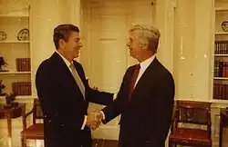In March 1981, after the Senate Agriculture Committee overwhelmingly approved a proposal to enact a temporary freeze on the level of dairy price supports and thereby gave President Ronald Reagan his first congressional victory for his federal spending reductions, Cochran stated that the vote was "a great victory for" Reagan and "a very important first step in having his program adopted by Congress."[47]