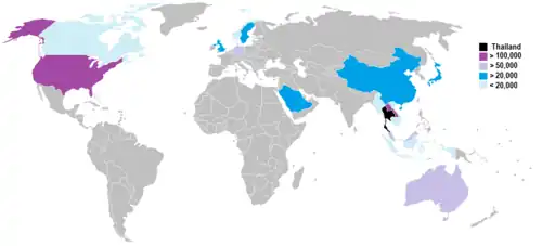 - ^ a b "สถิติจำนวนคนไทยในต่างประเทศ ประจำปี 2565" (PDF). mfa.go.th (in Thai). 5 April 2024. Archived (PDF) from the original on 31 January 2025.