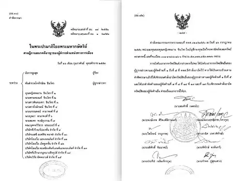 Later, the Constitutional Court ruled 8 to 7 that Thaksin Shinawatra did not have any intention in the matter. This ruling may have been influenced by public pressure against the Constitutional Court because at the time, Thaksin was very popular and some believed he should have been given the opportunity to govern the country.[54] However, there is still a part of society that is skeptical of the court's decision and sees Thaksin as disrupting the justice process,[55] leading to the complaint and removal of four Constitutional Court judges.