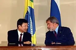 Thaksin entered politics in late 1994 through Chamlong Srimuang, who had just reclaimed the position of Palang Dharma Party (PDP) leader from Boonchu Rojanastien. In a subsequent purge of Boonchu-affiliated PDP cabinet ministers, Thaksin was appointed foreign minister in December 1994, replacing Prasong Soonsiri.[33] Thaksin left Palang Dharma along with many of its MPs in 1996, and founded the populist Thai Rak Thai (TRT) party in 1998. After a historic election victory in 2001, he became prime minister, the country's first to serve a full term.[34]