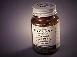 Canada's Food and Drug Directorate approved the sale of thalidomide by prescription in November 1960.[59] There were many different forms sold: Kevadon, produced by the William S. Merrell Company seeking approval for its thalidomide product, was released on the market in April 1961, and the most common variant (Horner's Talimol) was put on the market on October 23 of the same year.[60] Two months after Talimol went on sale, pharmaceutical companies sent physicians letters warning about the risk of birth defects.[60] It was not until March 1962 that both drugs were banned from the Canadian market by the directorate, and soon afterward physicians were warned to destroy their supplies.[60]