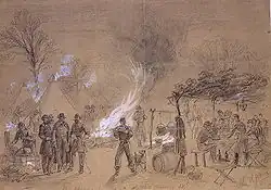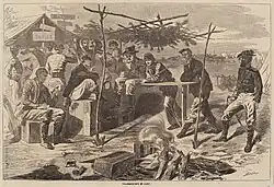 Sketch by Alfred Waud of Thanksgiving in camp (of General Louis Blenker) during the U.S. Civil War in 1861