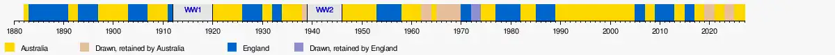 - ^ "Overall results figures of The Ashes". ESPNcricinfo. 21 December 2025. Archived from the original on 12 June 2023. Retrieved 21 December 2025.