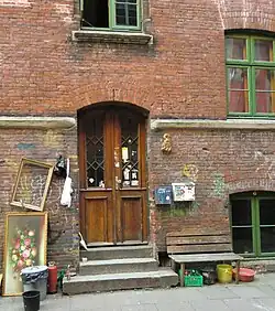 Lennon posed in front of the door of Jäger-Passage at Wohlwillstraße 22 for a photograph which was later used on the covers of his Rock 'n' Roll and Rock 'n' Roll Sessions albums. The photo was taken by Jürgen Vollmer, during the time The Beatles were playing at the Top Ten club.[47] Individual Beatles later commented about their memories of Hamburg, with Lennon reflecting, "We'd outlived the Hamburg stage and wanted to pack that up. We hated going back to Hamburg those last two times. We'd had that scene. Brian [Epstein] made us go back to fulfill the contract". Harrison had positive memories of the period: "I'd have to say with hindsight that Hamburg bordered on the best of Beatles times. We didn't have any luxury, we didn't have any bathrooms or any clothes, we were pretty grubby, we couldn't afford anything, but on the other hand we weren't yet famous, so we didn't have to contend with the bullshit that comes with fame." McCartney was philosophical: "Hamburg was certainly a great childhood memory. But I think all things are enhanced by time. It was very exciting, though I think it felt better to me a little later in our career, once we'd started to get a bit of success with the records."[107]